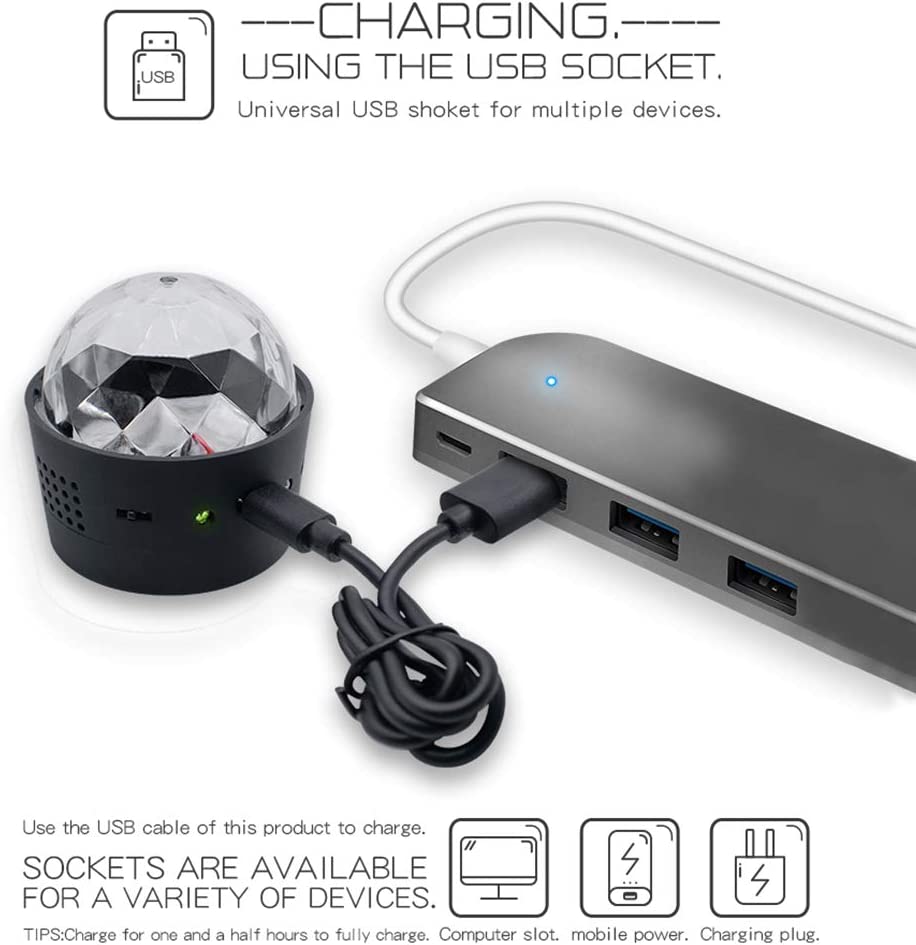 RECHARGEABLE BATTERY OPERATED: This portable DJ light ball includes built-in rechargeable battery, comes with USB data cable for USB adapter, power bank, laptop and USB car charger.